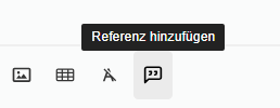 Referenzen können auch im Fließtext eines Textfeldes eingefügt werden. Dafür gibt es im Text-Editor ein entsprechendes Icon.