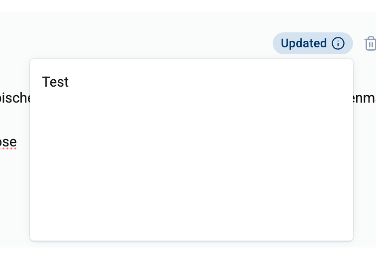 Beim Überarbeiten einer bestehenden Guideline werden sogenannte Update Tags eingefügt, welche den anderen Editoren Indikatoren bieten sollen, welche Inhalte bereits überarbeitet wurden. Diese können beim Veröffentlichen der Guideline auch für den Lesenutzer angezeigt werden, damit dieser Änderungen einsehen kann.